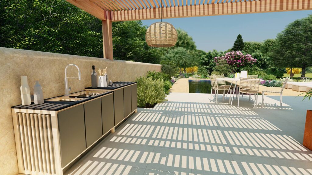 Serrault Jardins fait évoluer sa vision du paysage : le jardin devient un véritable lieu de vie et de partage. Ses cuisines extérieures, au design épuré et aux matériaux de qualité, s’intègrent harmonieusement entre architecture et végétation, affirmant le positionnement avant-gardiste de la marque et une nouvelle façon de vivre les espaces extérieurs.